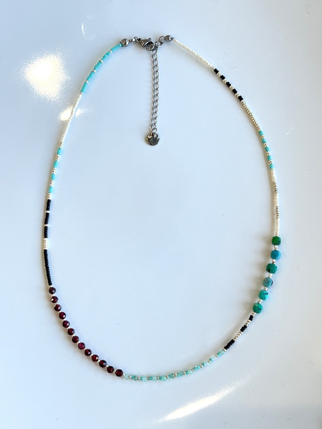 再販:天然石ビーズネックレス ガーネット/ターコイズ/アマゾナイト