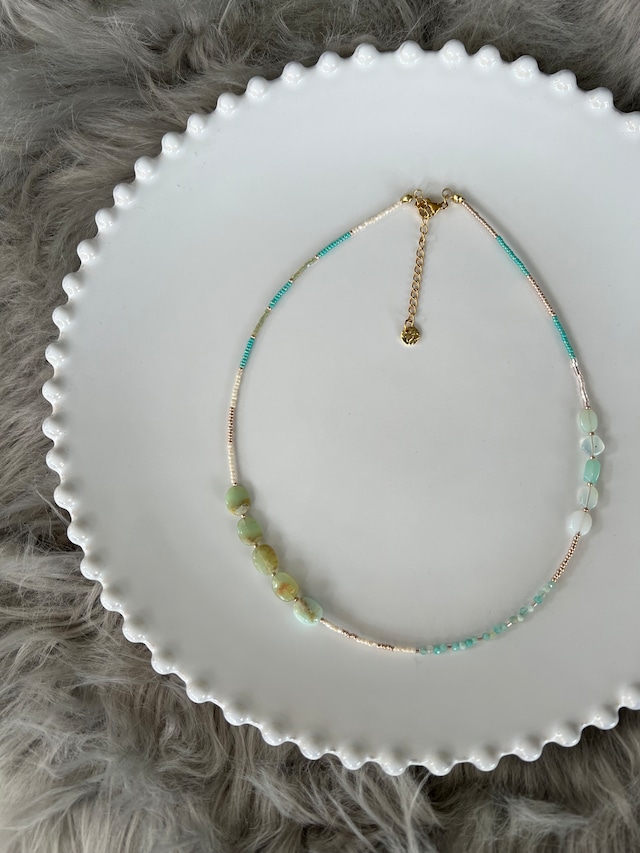 再販:天然石ビーズネックレス アマゾナイト/ペルーオパール