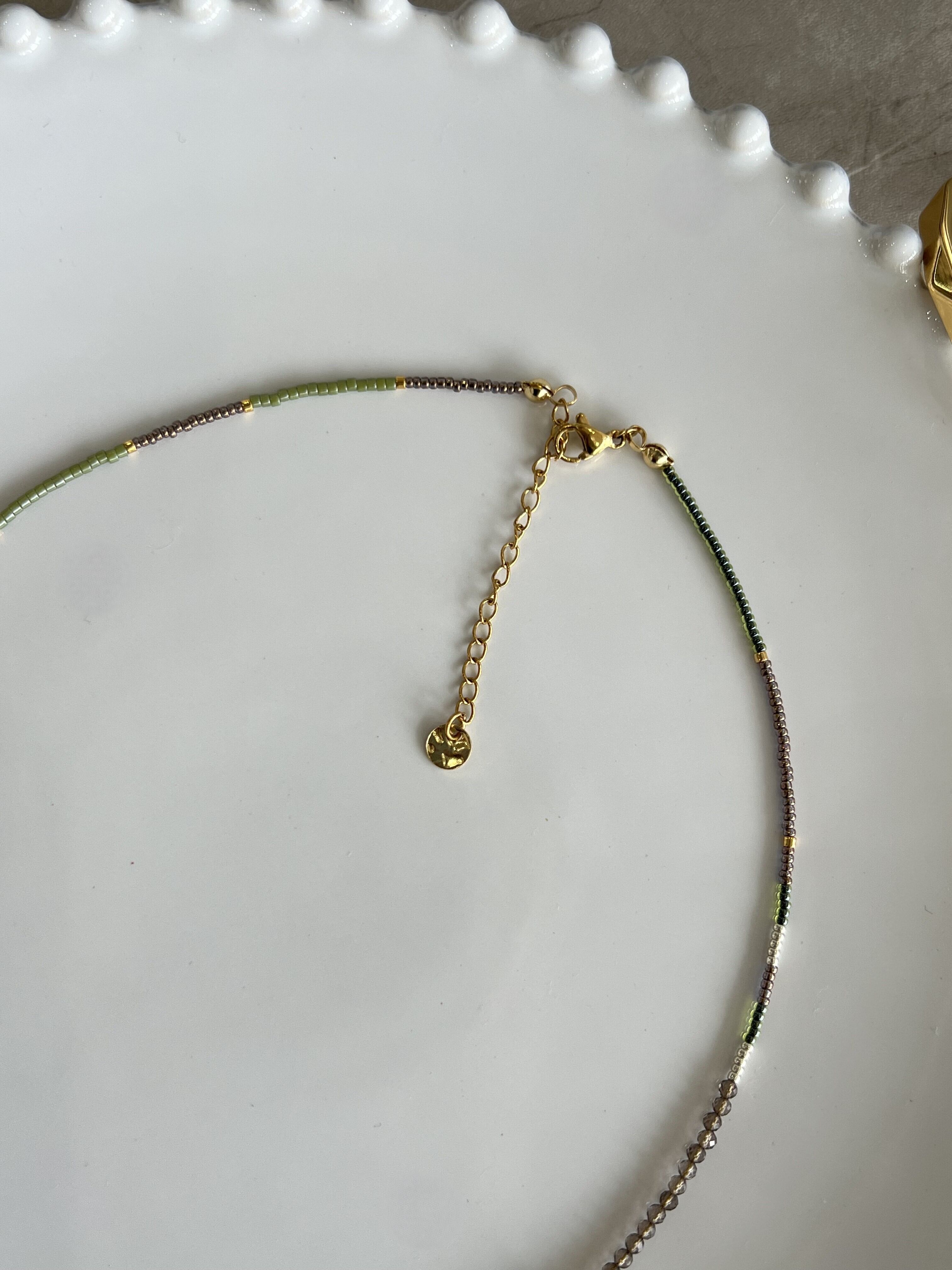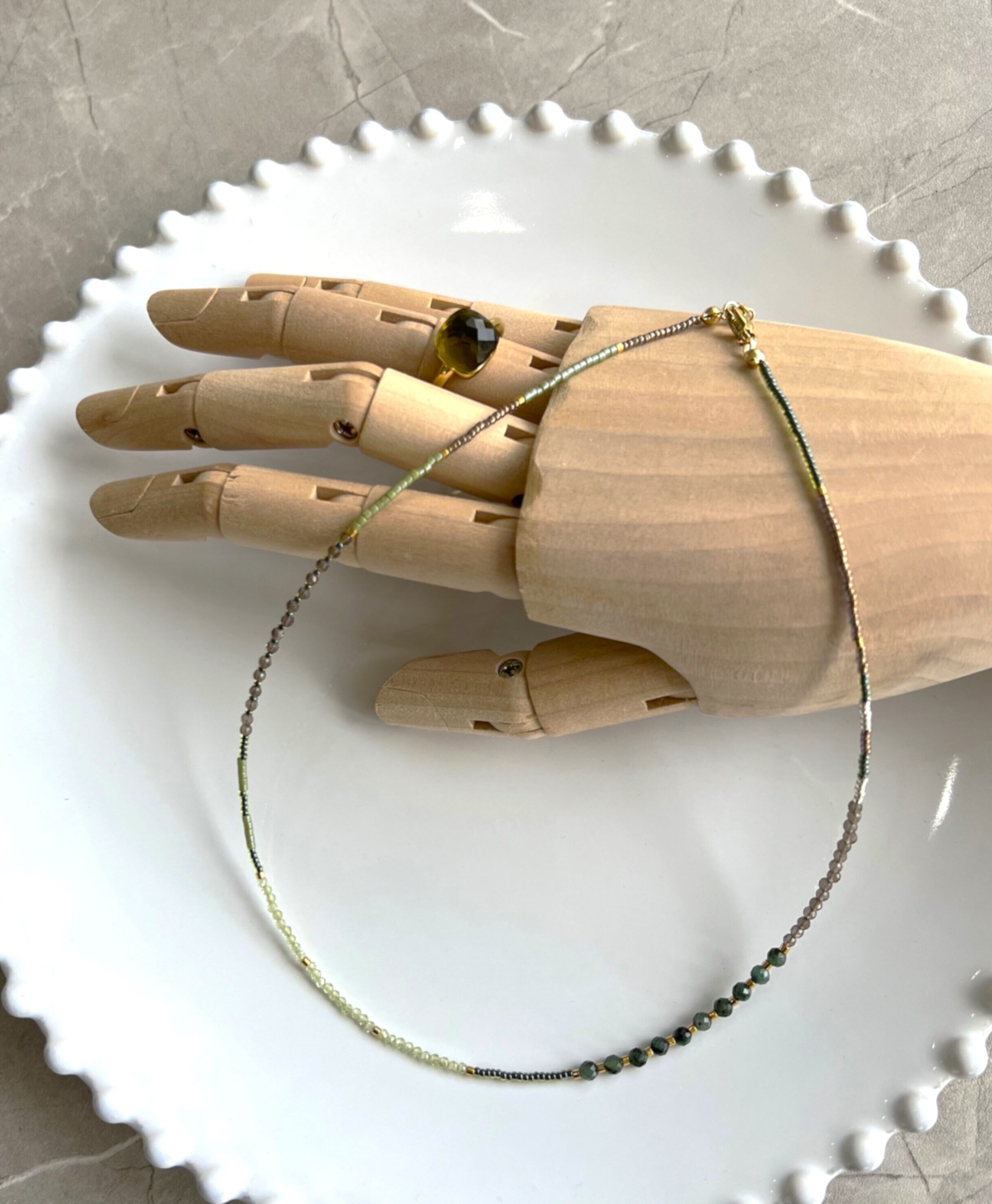 美しい天然石とガラスビーズを使用したネックレスです。