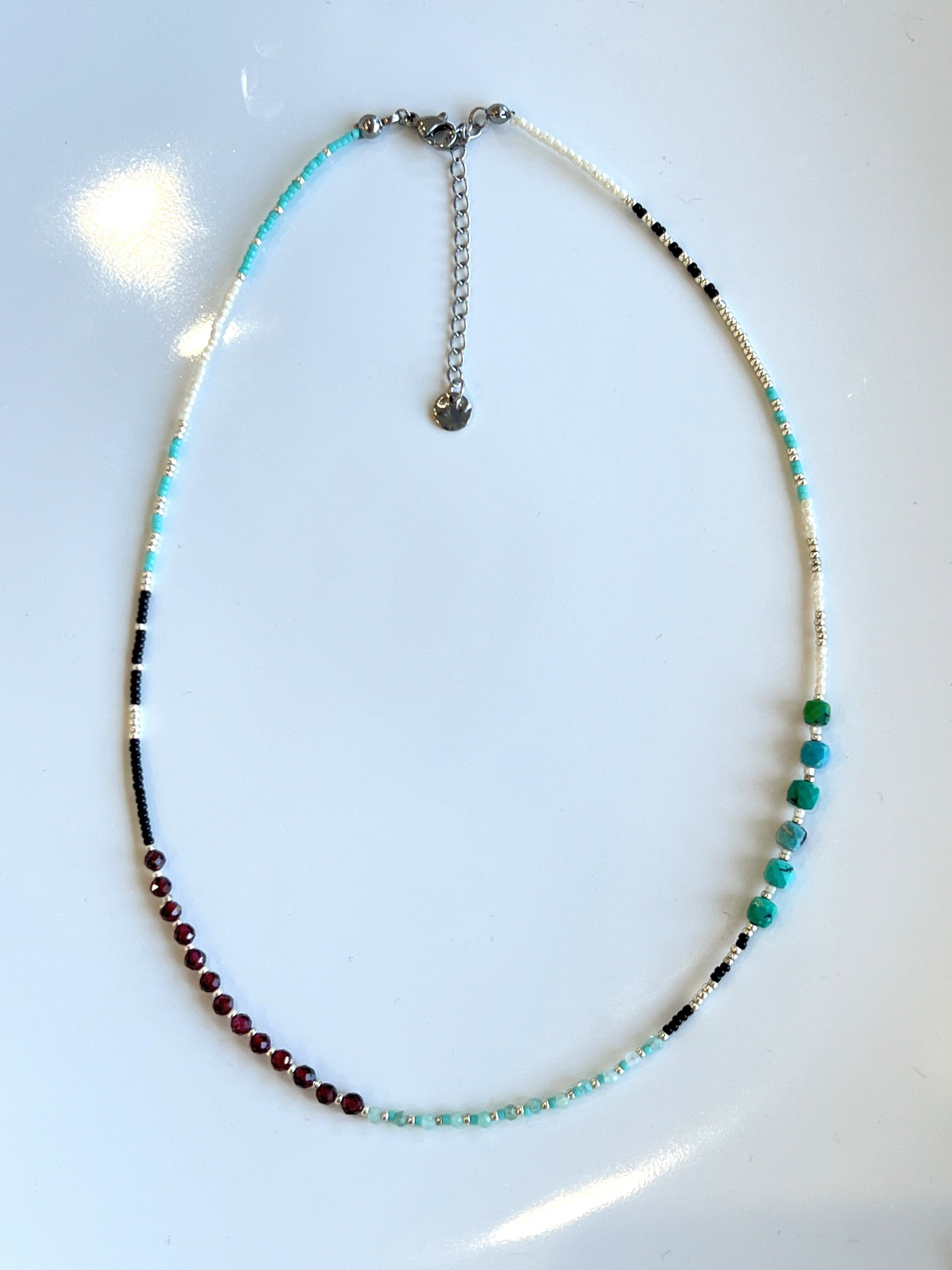 美しい天然石とガラスビーズを使用したネックレスです。