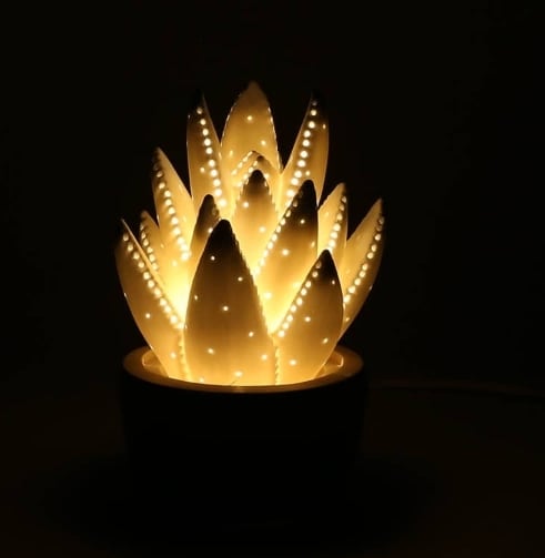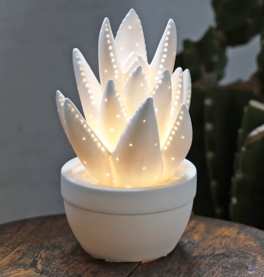 書斎の片隅に、相棒として置いておきたいアロエ型ランプ。