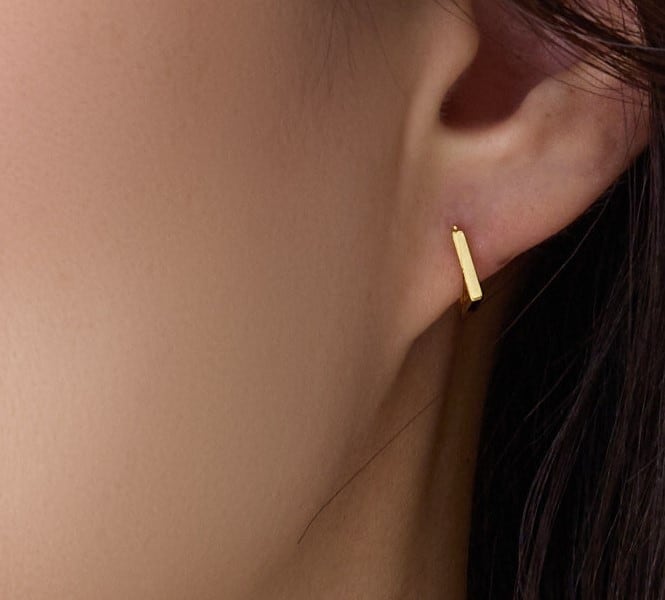 まるでピアスのような印象の大人気のスクエアフープイヤリングです。